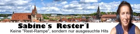 Nein, keine "Reste-Rampe", sondern nur ausgesuchte Hits, die hier und da mal übrig geblieben sind, aber trotzdem allerbeste Sahne sind. Das bringt uns Sabine dienstags ab 22:00 Uhr alle 14 Tage zu Gehör (gerade Wochen). Ihr Sendemotto: "Alles, was die Platten hergeben. Von Einschlafmusik bis Boxen entstauben". UND: freitags (ungerade Wochen) um 18:00 Uhr gehen wir mit Sabine ins "Wochen-Ende".