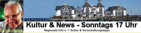 Jeden Sonntag von 17 bis 19 Uhr präsentieren wir Euch live aus dem Rügen Studio Lauterbach kompakte Informationen, aktuelle Nachrichten und kulturelle Highlights aus der Region. Der Gerhard ist immer auf dem neusten Stand und bestückt das Format auch mit guter Musik von heute und einst. Auch parallel auf 180grad-fm.