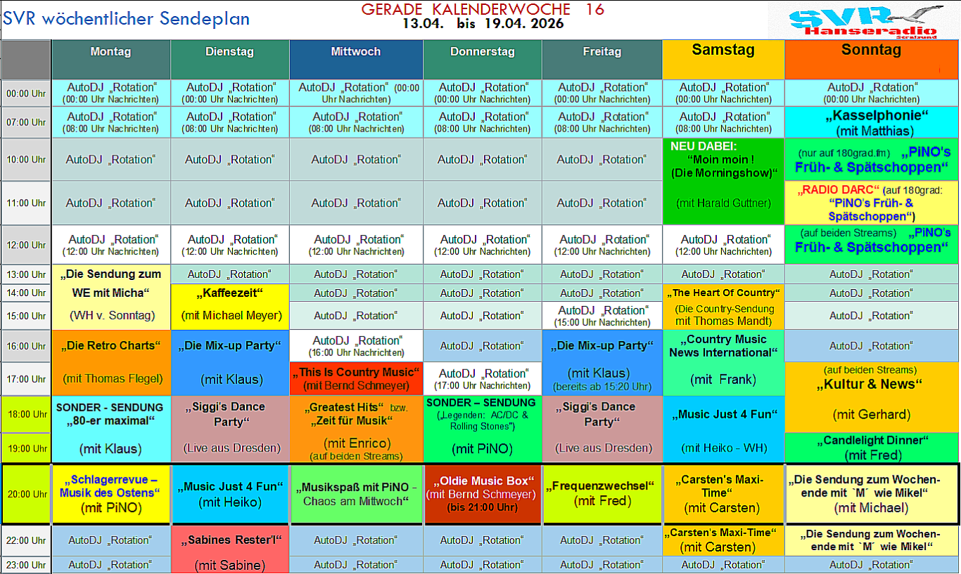(und ab 12:00 Uhr dann parallel auch auf dem SVR Hanseradio - Stream)