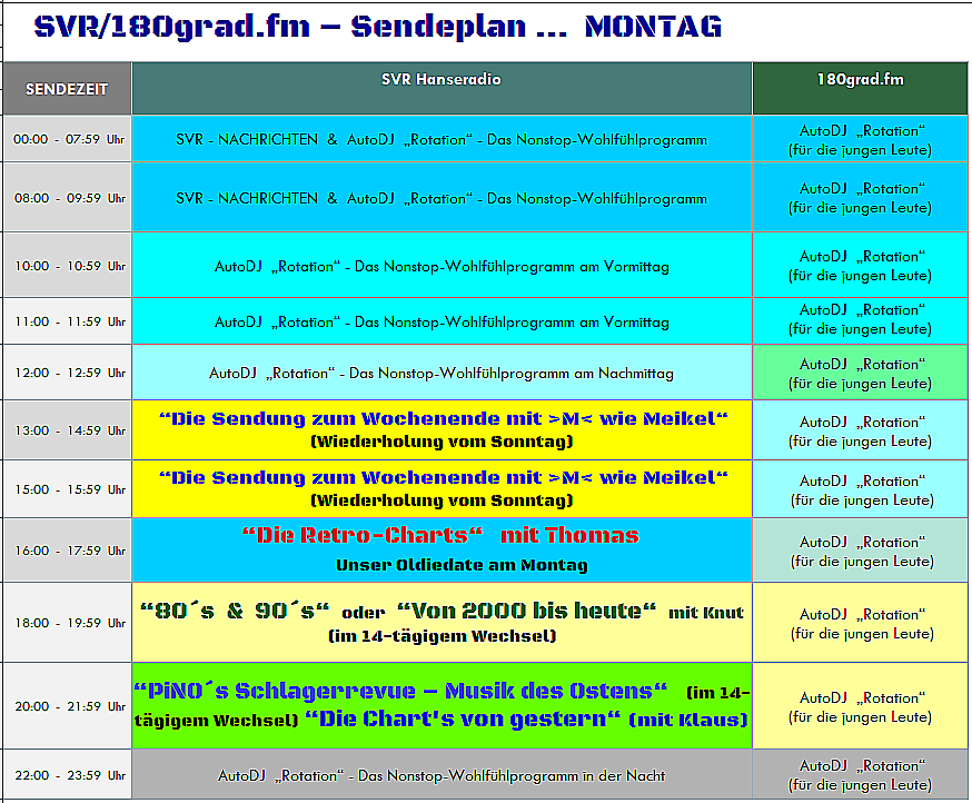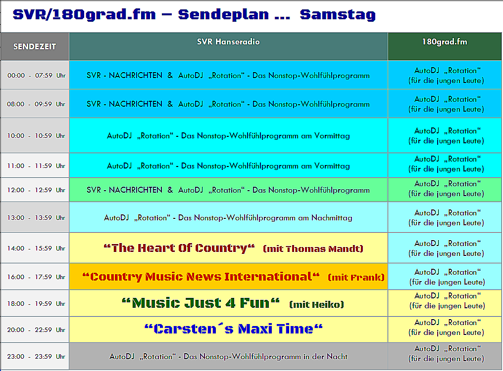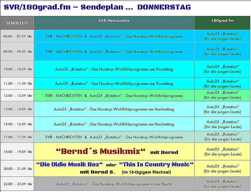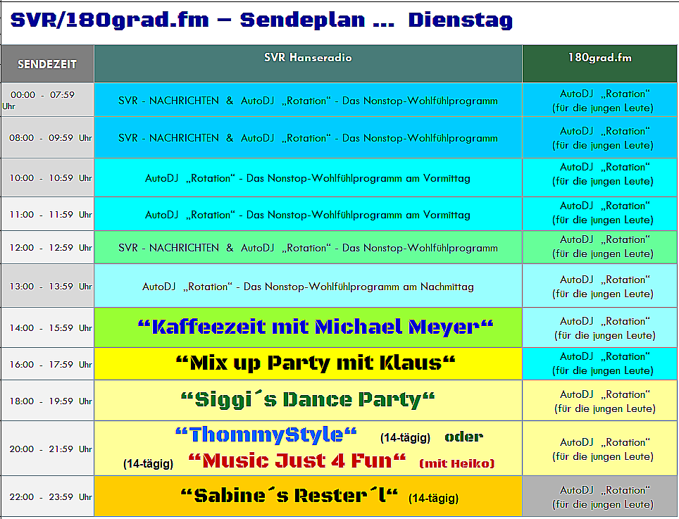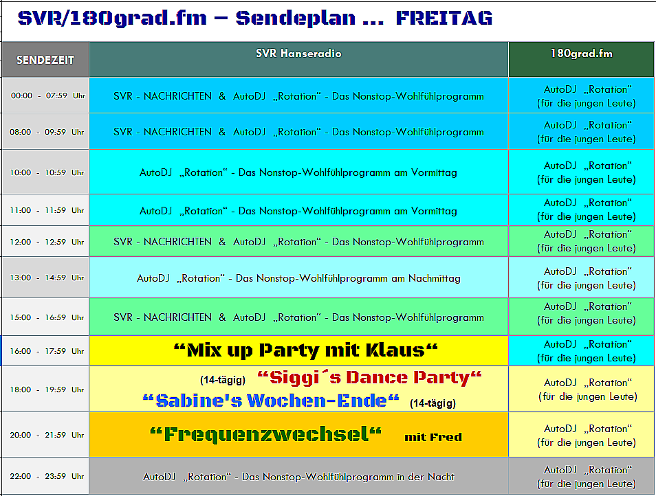 Kurzfristige Änderungen in den Sendeplänen sind immer mal möglich. Spontane Sendungen können natürlich hier nicht berücksichtigt werden.